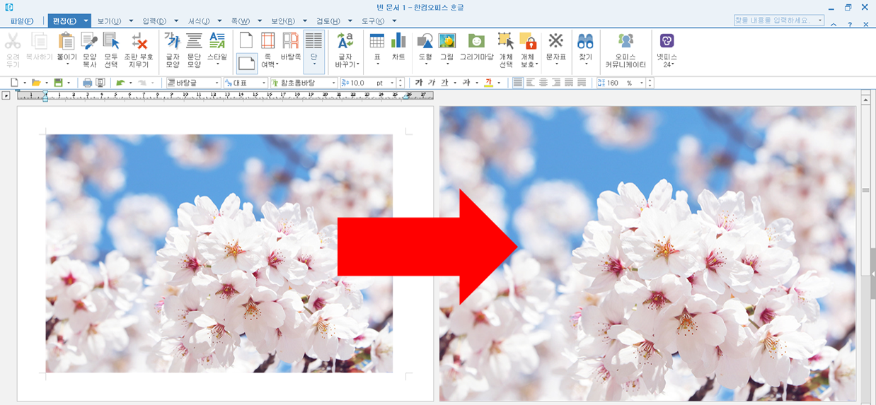 - 한글에서 사진을 전체 페이지에 꽉 채우기 완성