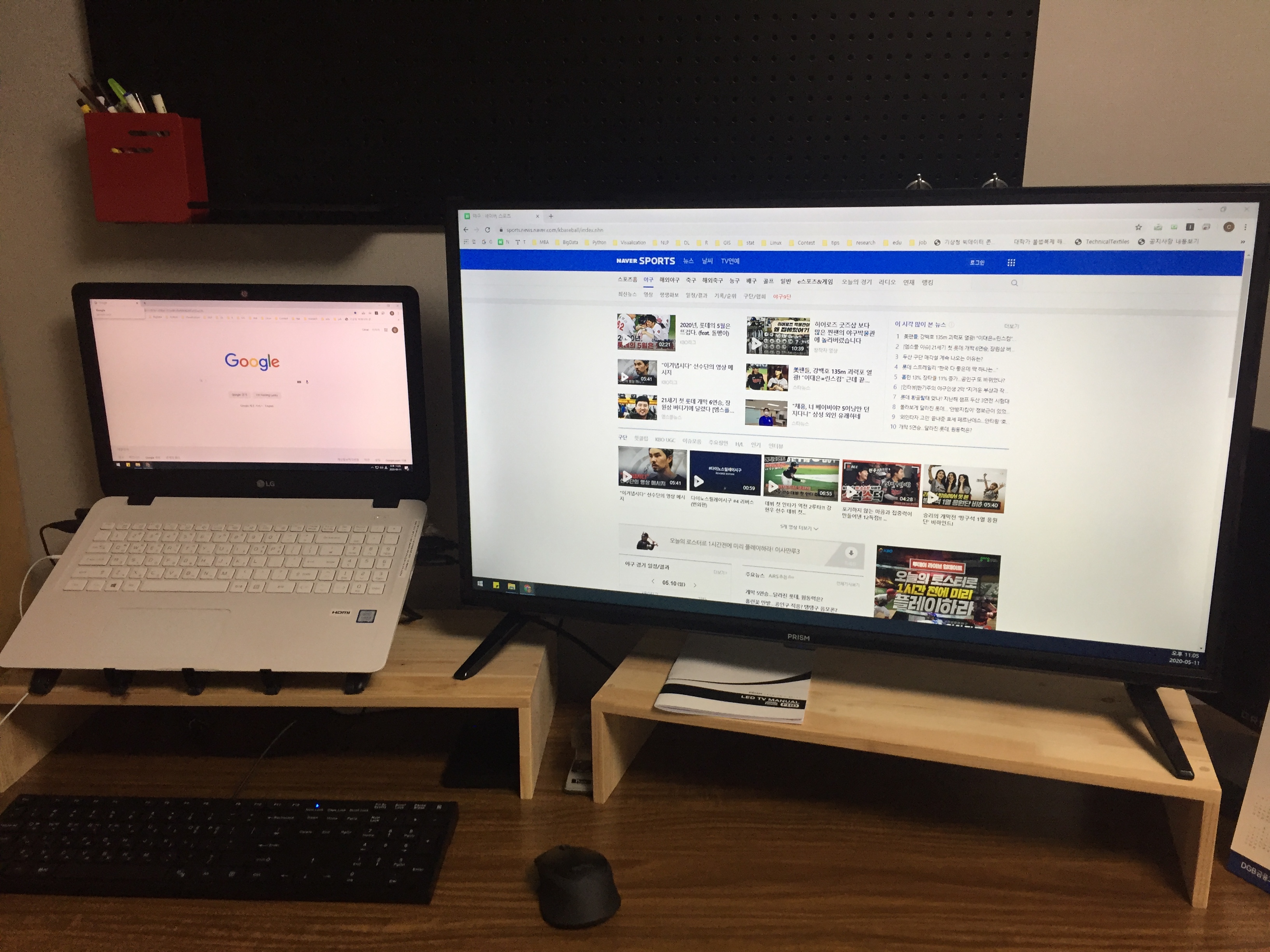 노트북이랑 TV를 HDMI로 연결하였더니 화면과 소리가 잘 전달되고 있다. TV라서 그런지 소리도 꽤나 괜찮게 난다. 어서 코로나-19가 물러가고 EPL이 재개되어 손흥민 선수가 뛰는 모습을 32인치 FHD 보조 모니터로 보고 싶다.