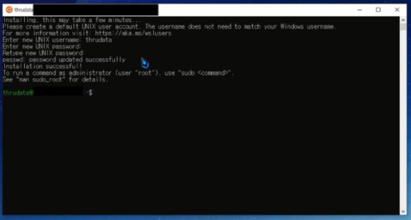 준비가 되면 username을 입력하라는 메시지가 나타난다. 자기 컴퓨터에서만 사용되는 이름이니 아무것이나 입력해도 된다.