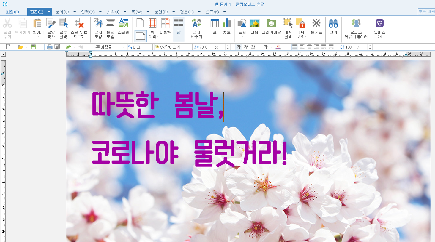 - 한글에서 사진을 전체 페이지에 꽉 채우기 완성