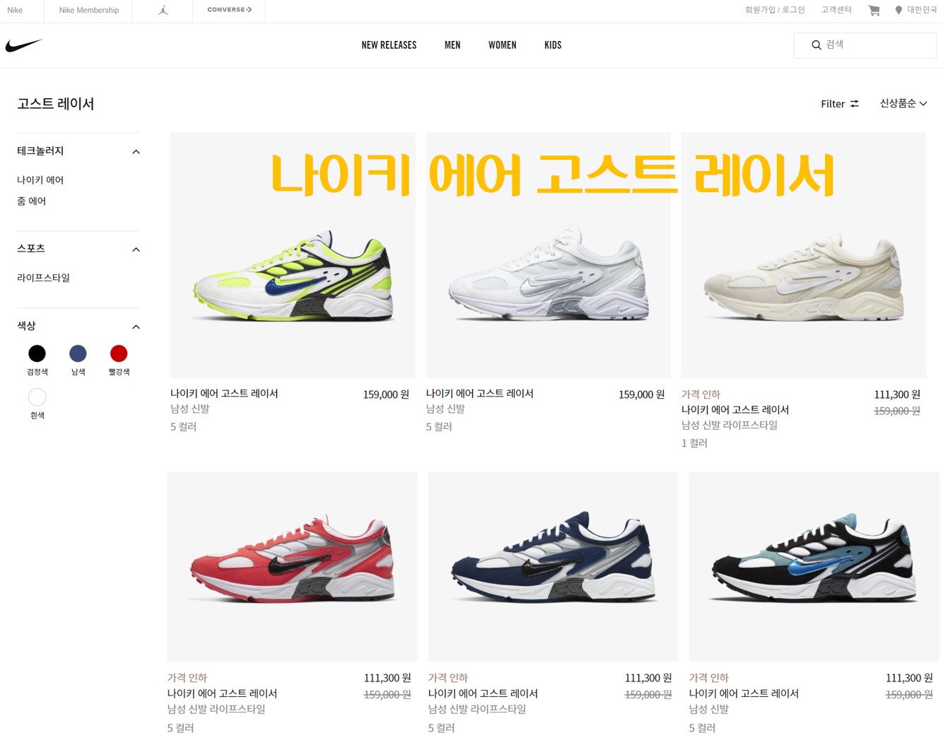 지금은 나이키 공식 홈페이지에서 159,000원 ~ 111,300원의 가격으로 판매 중이지만, 4월 중순에 진행된 세일 기간 중에는 67,000원의 가격으로 판매되었다. 나이키 공식 온라인 몰에는 위에서 보이는 6가지 색상만 판매하고 있었다.