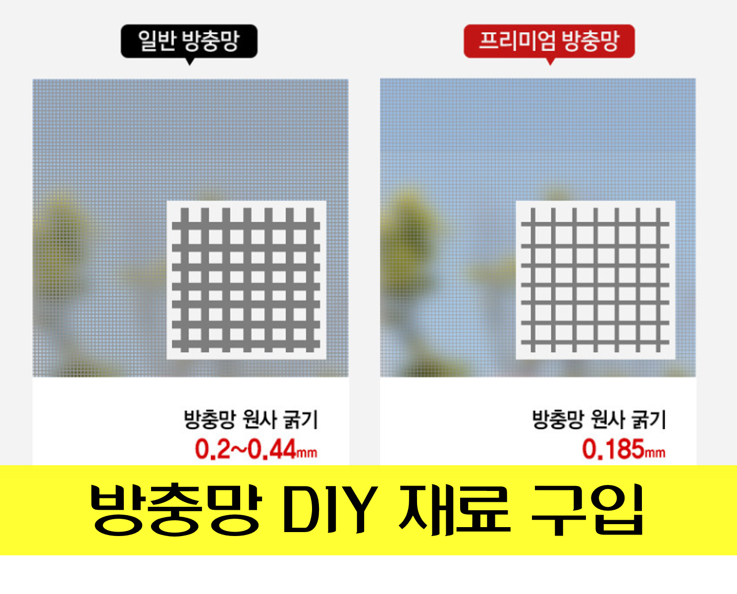 지금 설치되어 있는 기본 방충망이 18x16 mesh이니, 위 제품 중 무엇을 선택하더라도 벌레는 막는 효과는 뛰어날 것으로 판단되었다.
