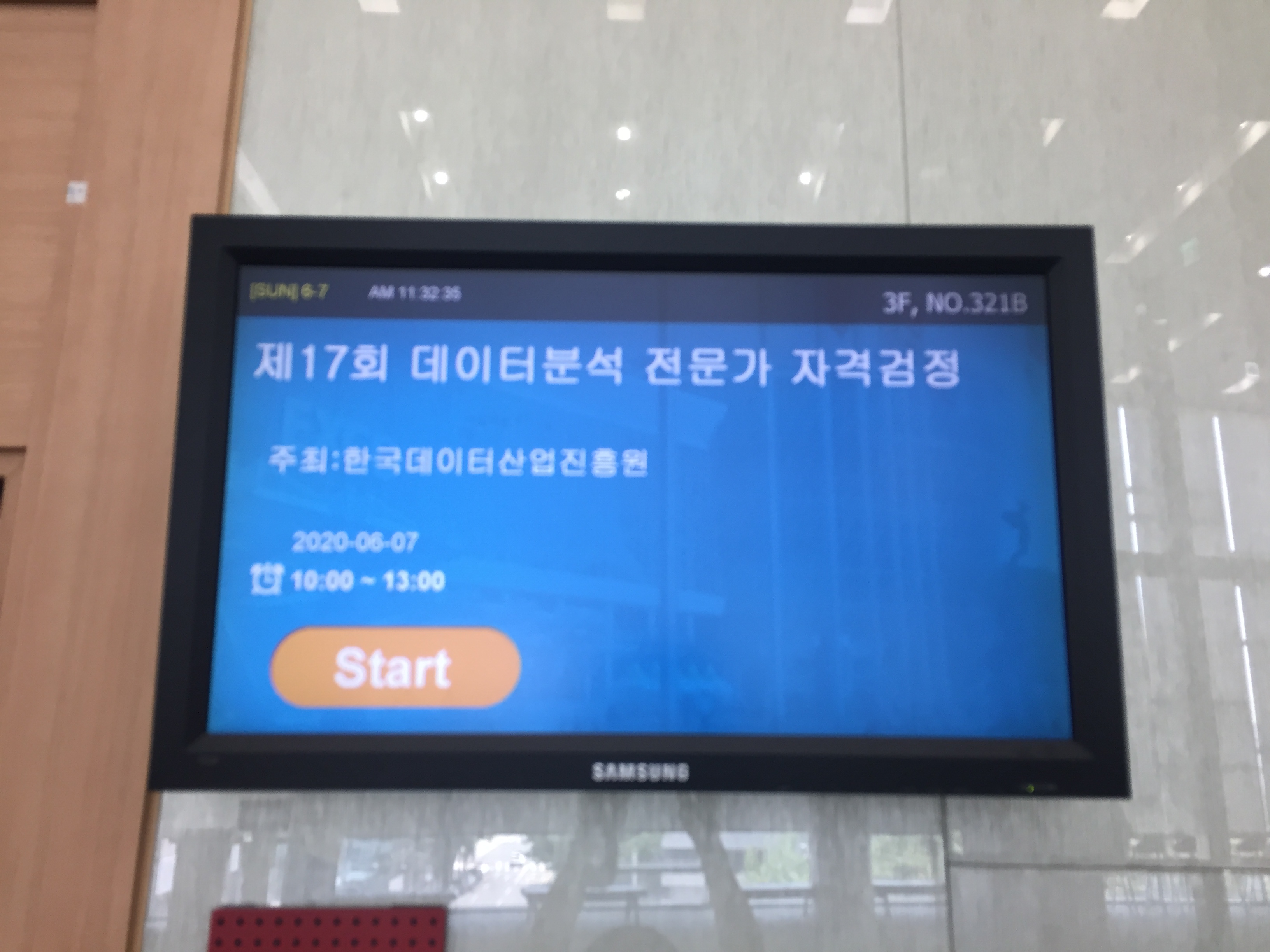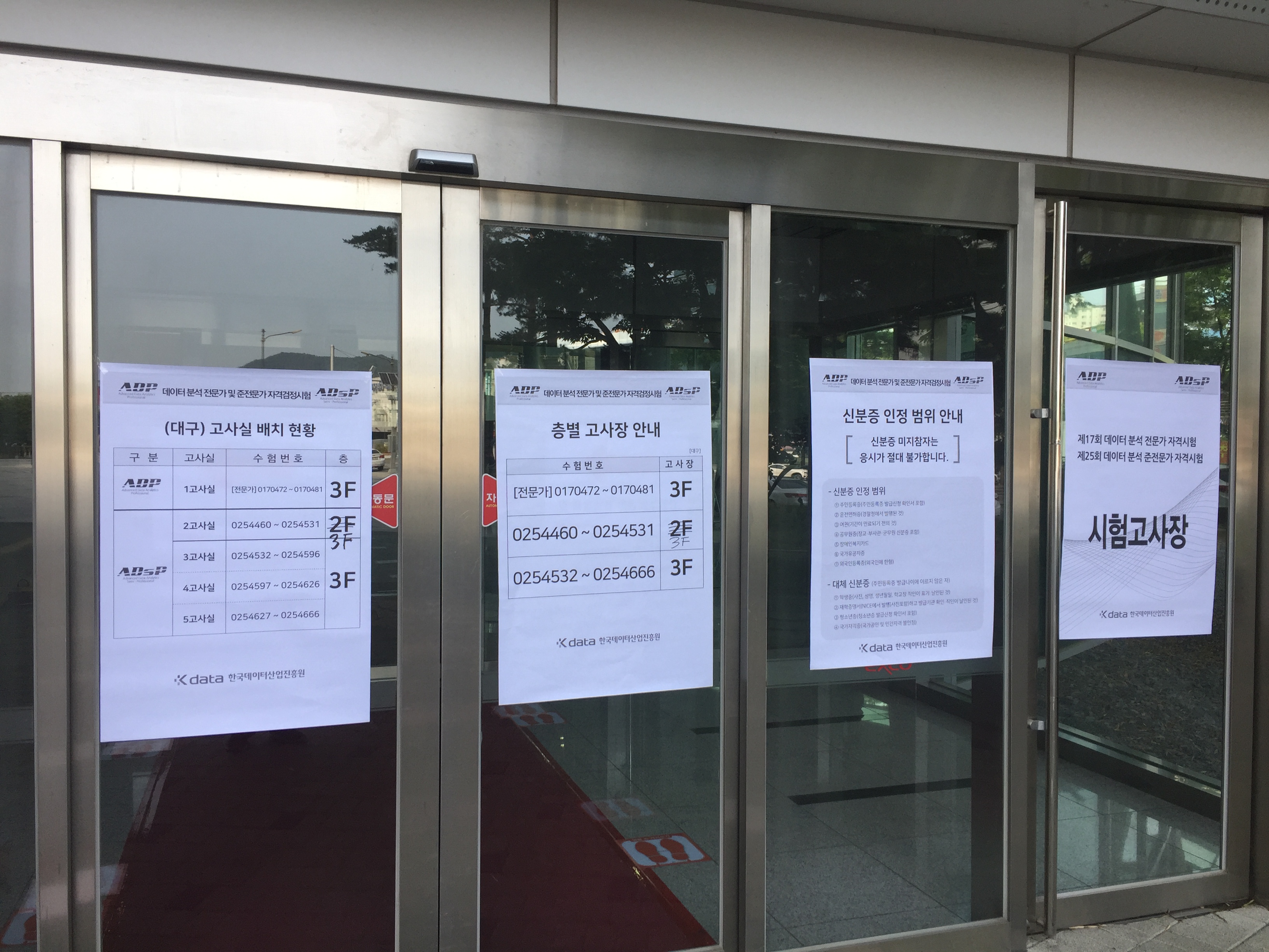 내가 친 시험은 제25회 ADsP 이지만, 찍다 보니 ADP 고사장 알림 모니터를 찍었다.