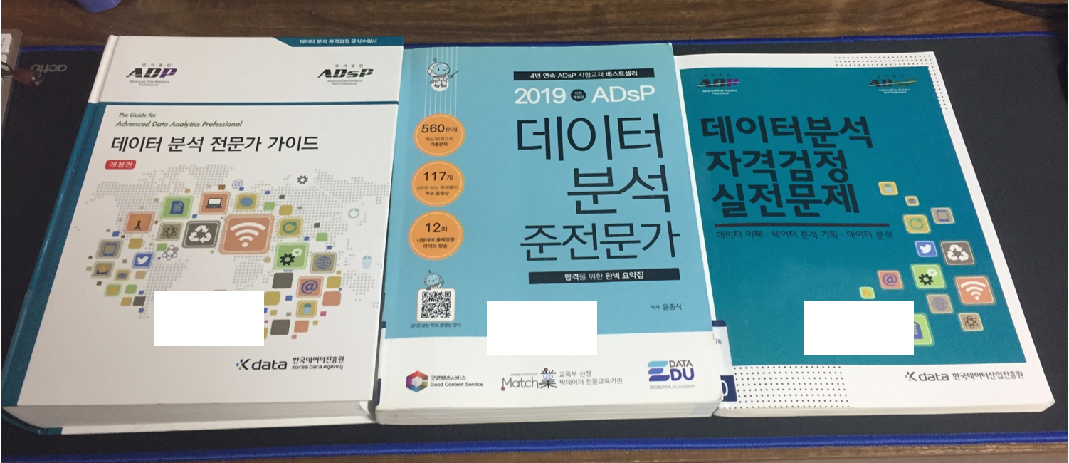오른쪽 책은 기출문제집이다. 2017년에 한국데이터산업진흥원(ADsP 시험 주관기관)에서 펴낸 책이지만 충분히 도움이 된다.
