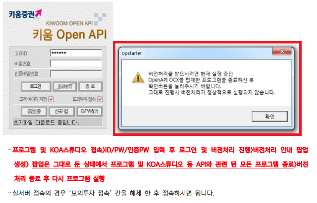2. 키움 관련 프로그램을 모두 종료한다.(KOA, OPEN API 등)