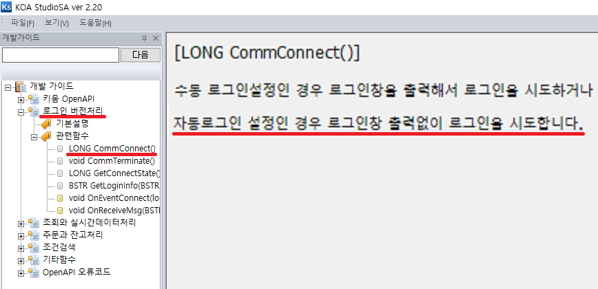 "signal_login_commConnect"는 네트워크에 데이터를 전송하고(dynamicCall), 자동 로그인하기 위함이다.
