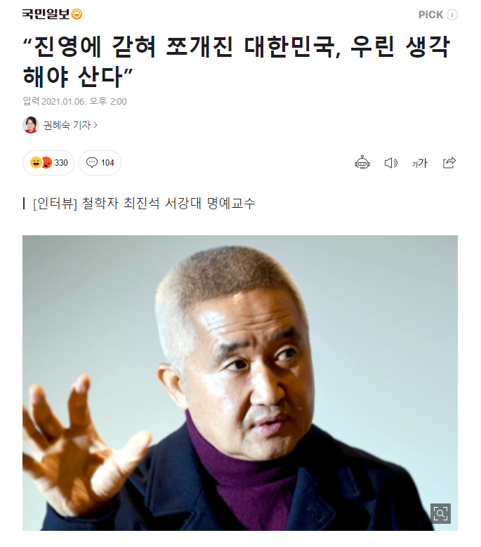 좌파 우파, 진보 보수 등 진영논리에 대한 인터뷰한 기사를 보고 요약과 내 생각을 정리해본다.