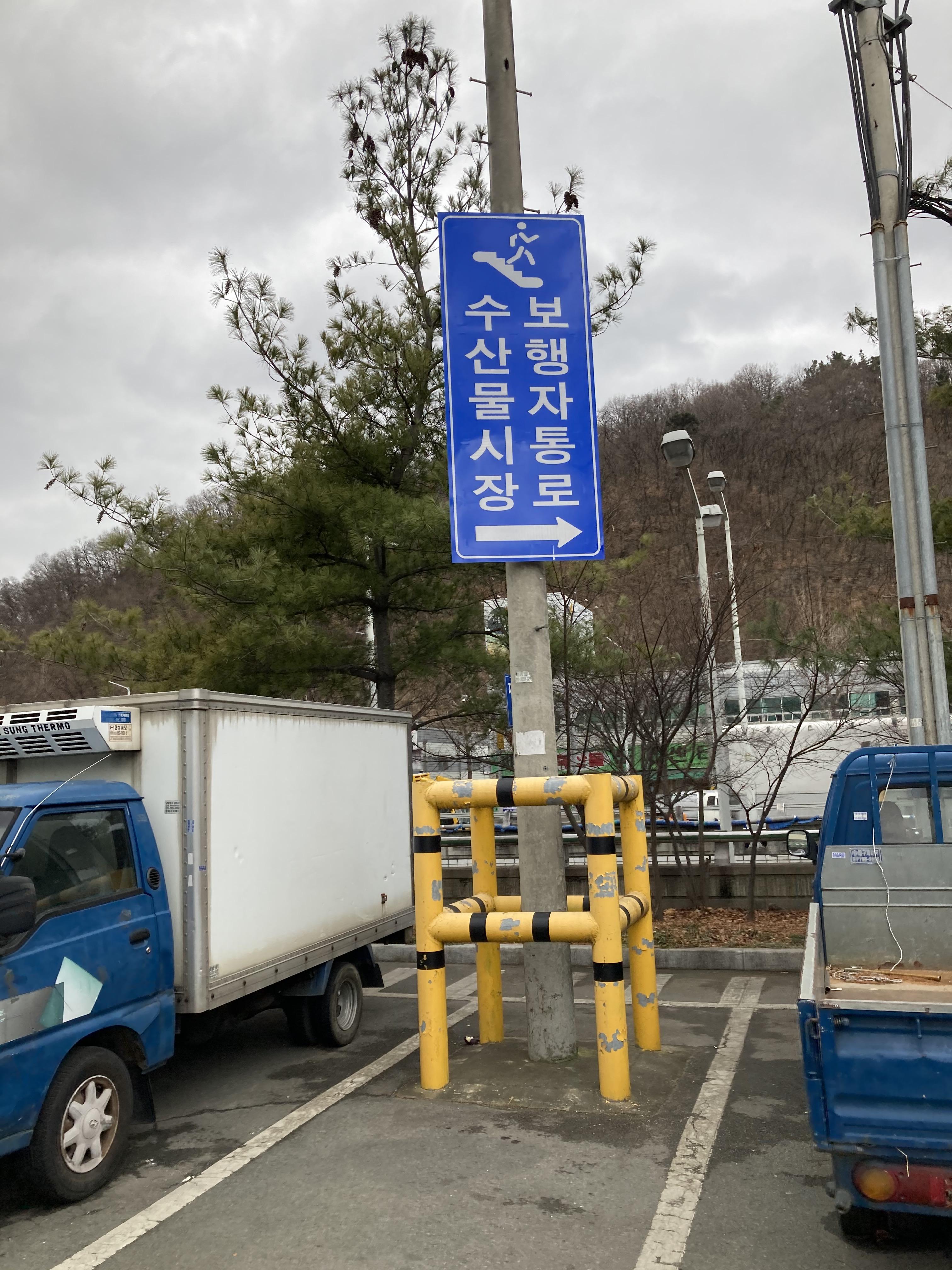 농산물 시장에 주차하고, 위와 같은 표지를 찾아 지하로 넘어가면 된다.