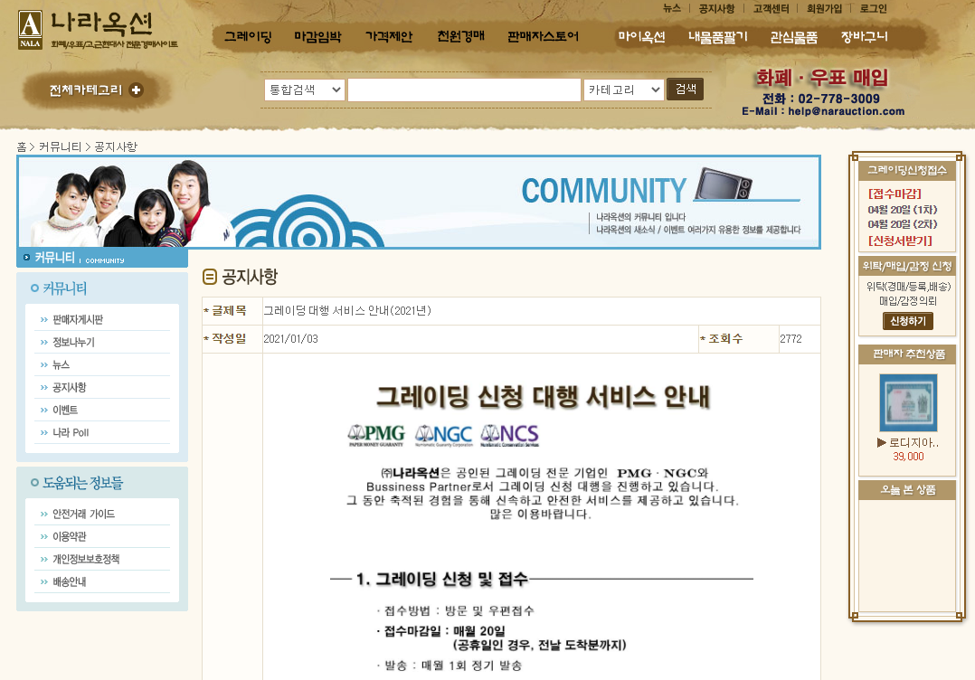 화동양행과 나라옥션이 그레이딩 대행사 중 큰 2군데로 판단된다. 그레이딩 비용은 두 곳이 비슷한데, 나라옥션이 조금 저렴하다. 나라옥션은 접수비가 없다. 대신 나라옥션은 현금/계좌이체만 가능하고, 화동양향은 카드 결제가 가능하다.