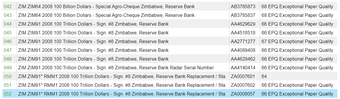 지난 4월 말, 오랫동안 보관 중이던 짐바브웨 지폐들을 그레이딩 보냈다.