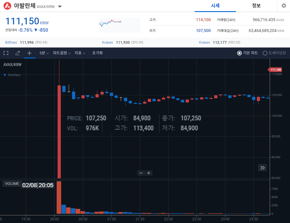 2022.02.08. AVAX 아발란체가 신규 상장되었다.