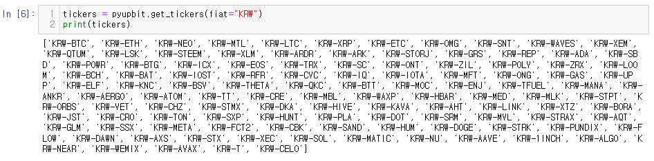 tickers = pyupbit.get_tickers(fiat="KRW")