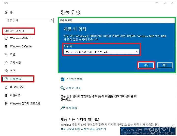윈도우10 정품인증 하기