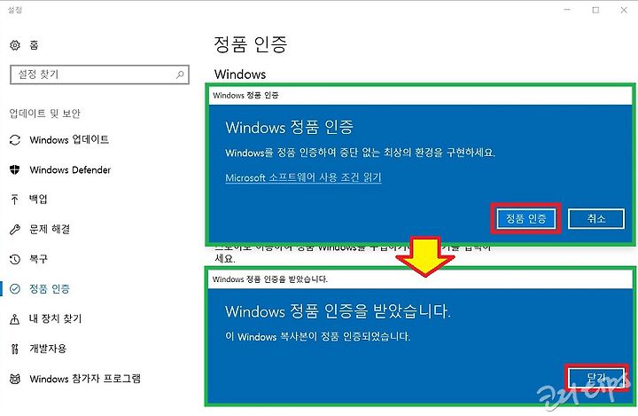 <그림2. 윈도우10 정품인증 하기2>